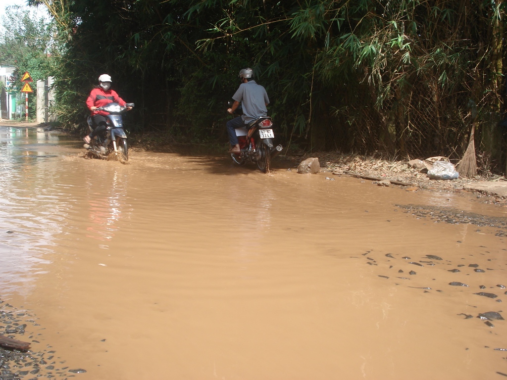| Một đoạn đường Hùng Vương ngập nước sau mưa. |