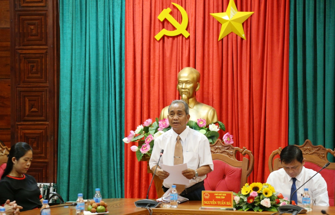 | Phó Chủ tịch Thường trực UBND tỉnh Nguyễn Tuấn Hà phát biểu tại buổi gặp mặt. |