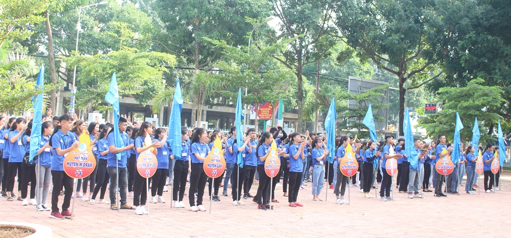 Trong đó, đội hình cấp tỉnh gồm 4 đơn vị (Đại học Tây Nguyên, Cao đẳng Sư phạm Đắk Lắk, Cao đẳng Công nghệ Tây Nguyên và Đoàn Khối các cơ quan tỉnh), với 350 tình nguyện viên chi viện về 10 địa bàn trọng điểm thuộc các huyện Krông Pắc, Krông Năng, M'Đrắk, Ea H'leo, Ea Kar, Lắk, Krông Bông, Cư Kuin, Krông Búk và thị xã Buôn Hồ để phối hợp với lực lượng TNTN tại chỗ của địa phương thực hiện những công trình, phần việc hướng về cộng đồng.