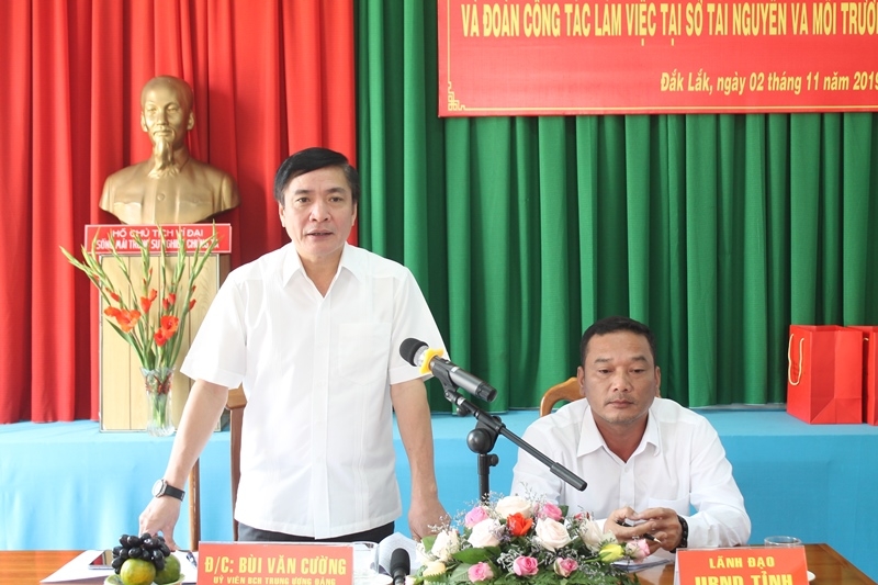 | Ủy viên Trung ương Đảng, Bí thư Tỉnh ủy Bùi Văn Cường phát biểu tại cuộc họp |