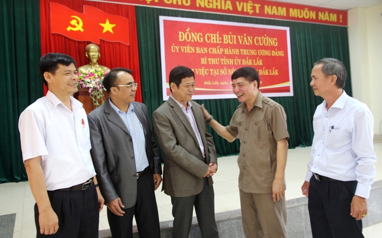 | Ủy viên Trung ương Đảng, Bí thư Tỉnh ủy Bùi Văn Cường phát biểu tại buổi làm việc. |