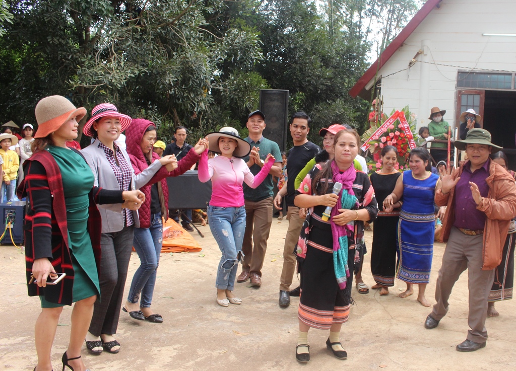 | Người dân trong buôn và du khách cùng chung vui ngày hội. |