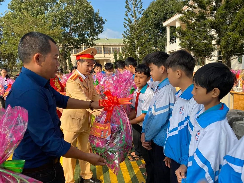 | ... và tặng quà Tết cán bộ, giáo viên Trường Tiểu học Nguyễn Thị Minh Khai (điểm trường buôn Dliêya A) |