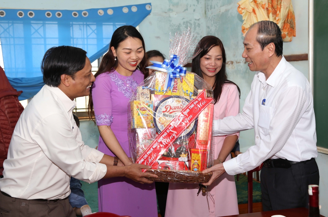 Nhân dịp này, đồng chí Phạm Ngọc Nghị cùng đoàn công tác đã đến thăm, tặng quà Tết cán bộ, giáo viên, công nhân viên điểm trường buôn Dliêya A thuộc Trường Tiểu học Nguyễn Thị Minh Khai và Trường Mầm non Hoa Thủy Tiên.