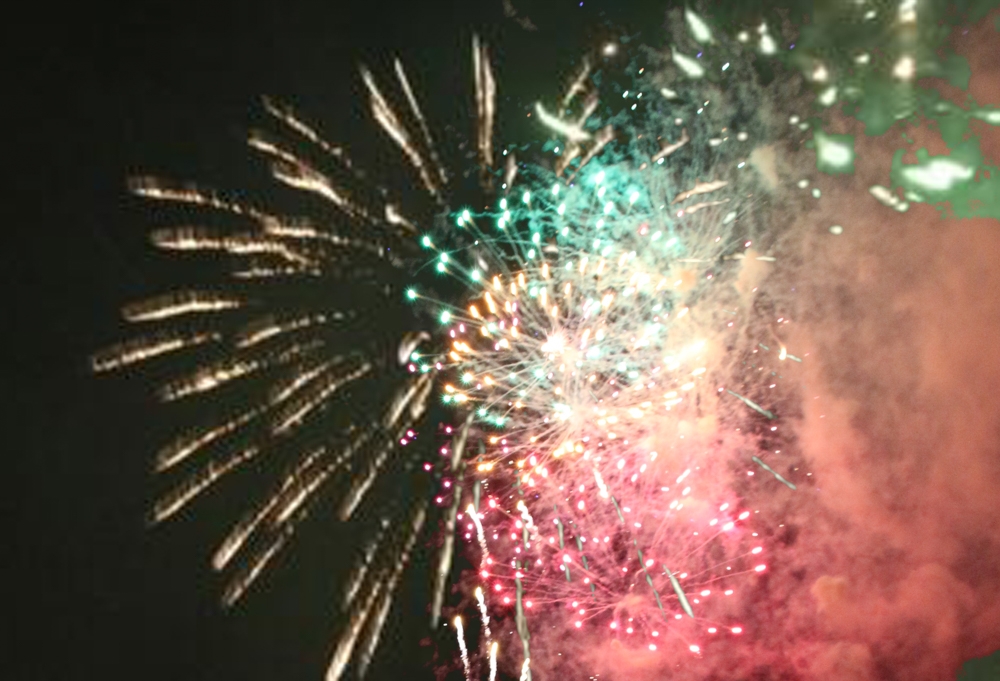 | Đúng 22 giờ chùm pháo hoa đầu tiên bay lên bầu trời trong tiếng reo mừng của người dân. |
