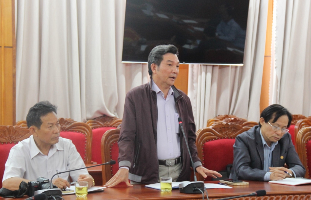 | Phó Giám đốc Đài Phát thanh và Truyền hình tỉnh Trần Đại nêu ý kiến tại Hội nghị. |