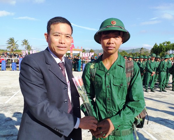 | Bí thư Huyện ủy Krông Bông Đỗ Quốc Hương động viên tân binh trước khi lên đường nhập ngũ. |