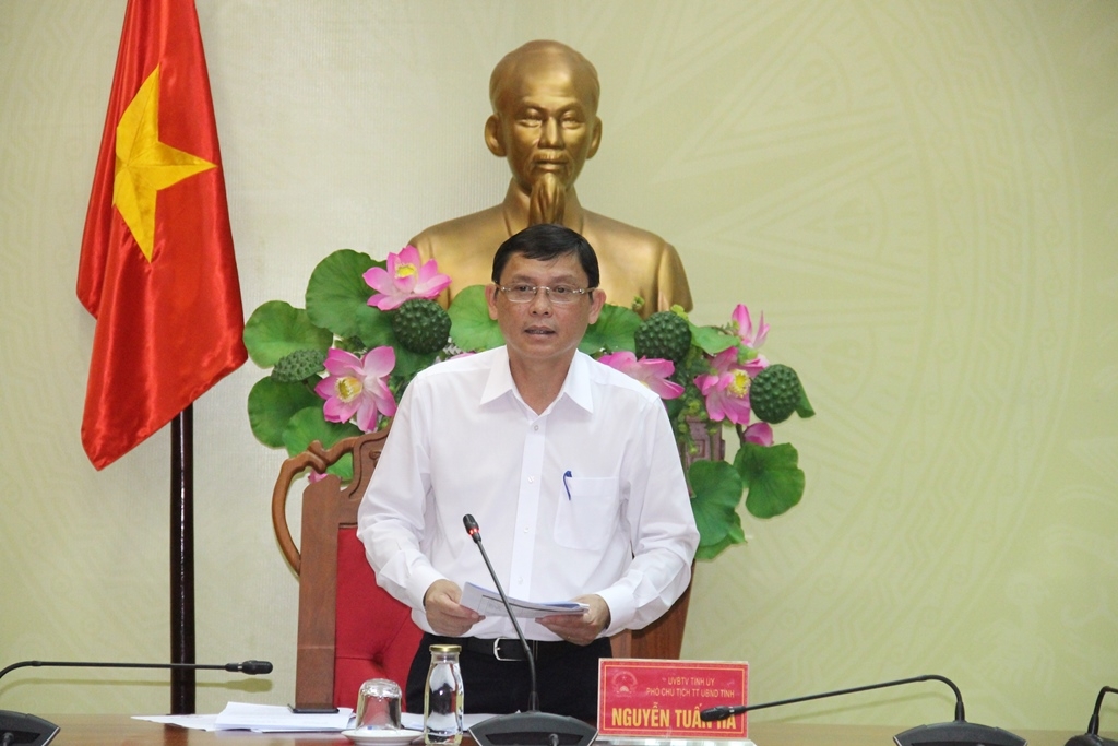 | Phó Chủ tịch Thường trực UBND tỉnh Nguyễn Tuấn Hà phát biểu tại cuộc họp. |