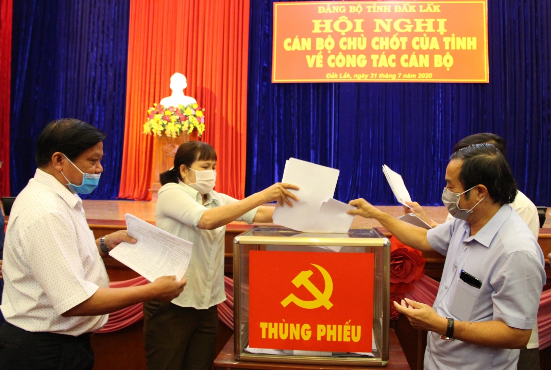 | Các đại biểu bỏ phiếu tín nhiệm về công tác cán bộ. |