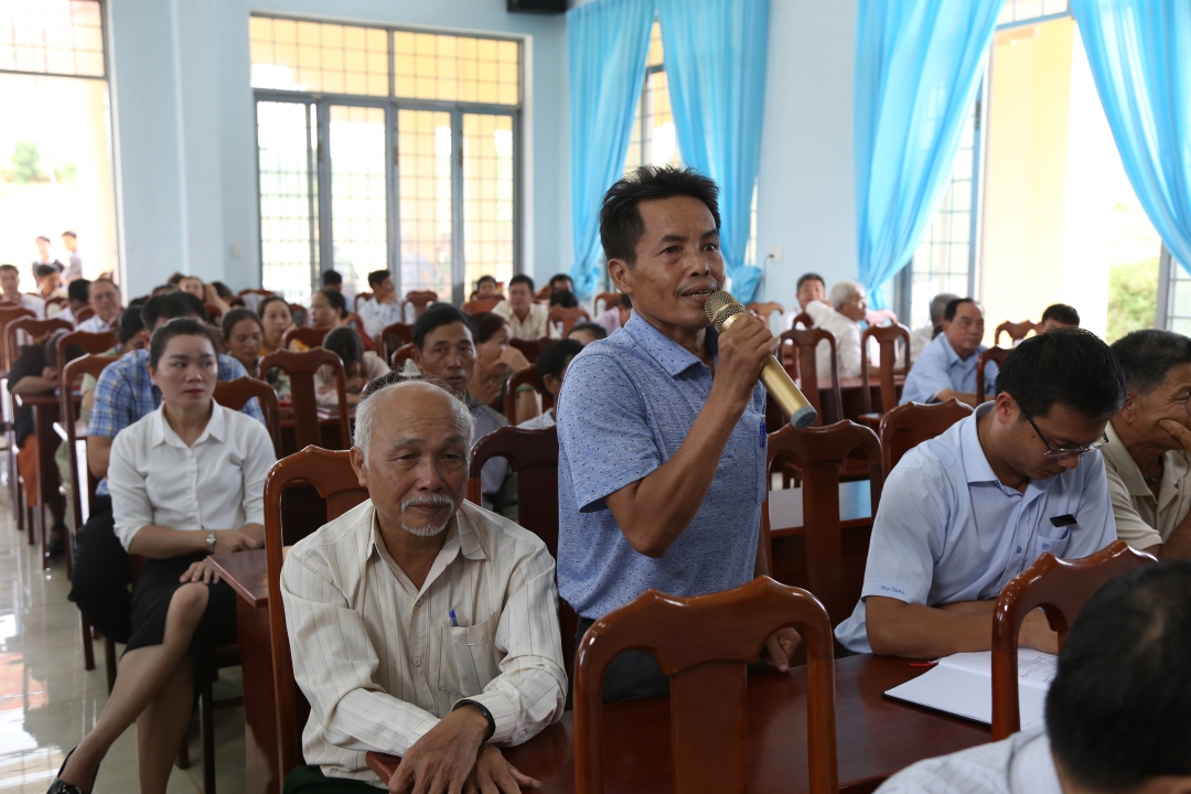 | Cử tri Phan Văn Vinh (thôn Tân Lập 5, xã Cư Bao) nêu ý kiến tại buổi tiếp xúc cử tri. |