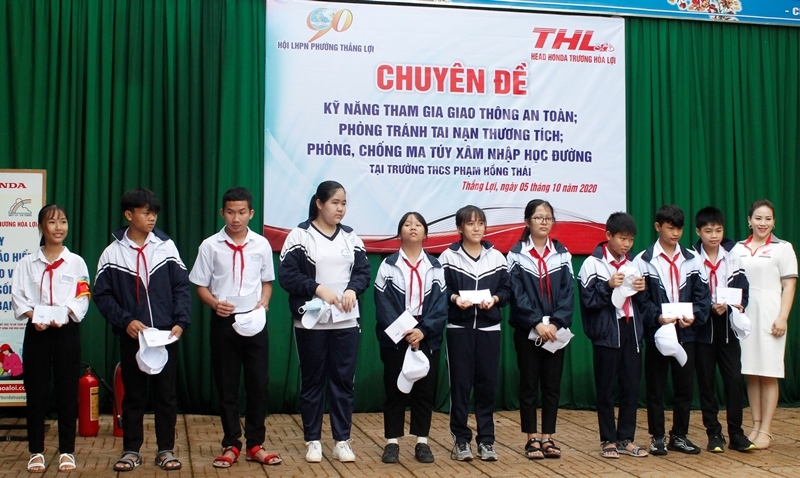 Sáng 5-10, Hội LHPN phường Thắng Lợi phối hợp với Công an TP. Buôn Ma Thuột và Công ty Head Honda Trương Hòa Lợi tổ chức nói chuyện chuyên đề kỹ năng tham gia giao thông an toàn, phòng tránh tai nạn thương tích và phòng, chống ma túy xâm nhập học đường cho toàn thể học sinh Trường THCS Phạm Hồng Thái (TP. Buôn Ma Thuột).