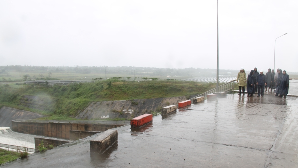| Lãnh đạo Công ty TNHH MTV Quản lý công trình thủy lợi Đắk Lắk đi kiểm tra hồ chứa Krông Búk hạ |