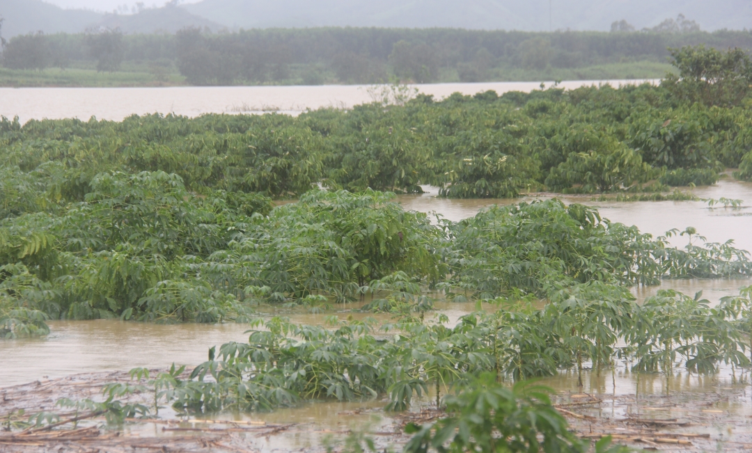 | Nhiều diện tích cấy trồng ở huyện Krông Bông bị ngập. |