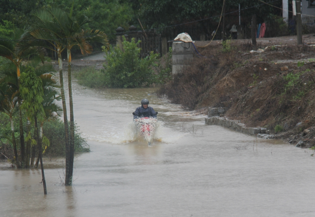 | Một tuyến đường tại thôn 9 (xã Hòa Lễ) bị ngập. |