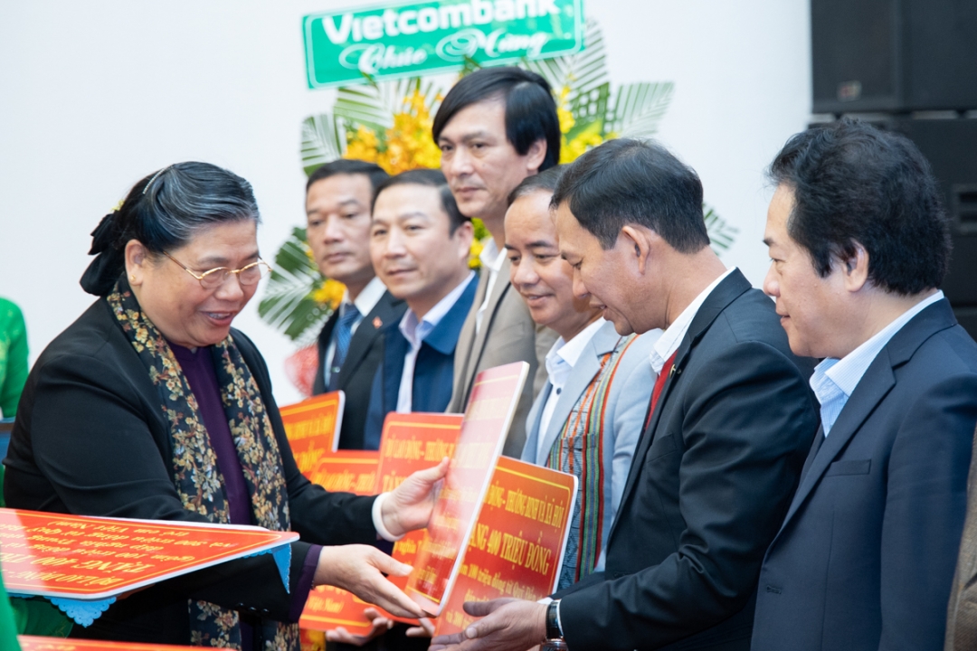| Đồng chí Tòng Thị Phóng trao quà tặng hộ nghèo dân tộc thiểu số cho đại diện các tỉnh tham dự Hội thảo. Ảnh: Hoàng Gia |
