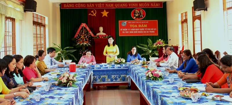 Sáng 4-3, Hội Liên hiệp Phụ nữ (LHPN) thị xã Buôn Hồ đã tổ chức Tọa đàm kỷ niệm 111 năm Ngày Quốc tế Phụ nữ (8-3) và 1981 năm Khởi nghĩa Hai Bà Trưng.