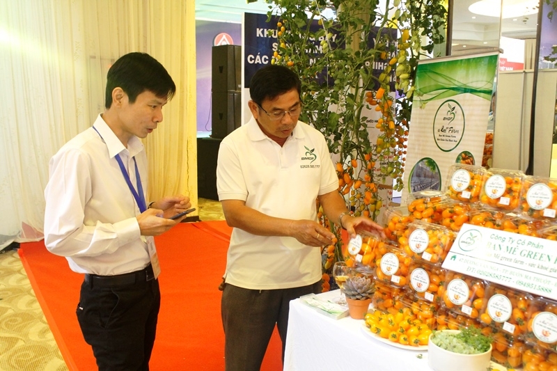 | Đại biểu tìm hiểu về sản phẩm cà chua Nova của Công ty TNHH Ban Mê Green Farm |