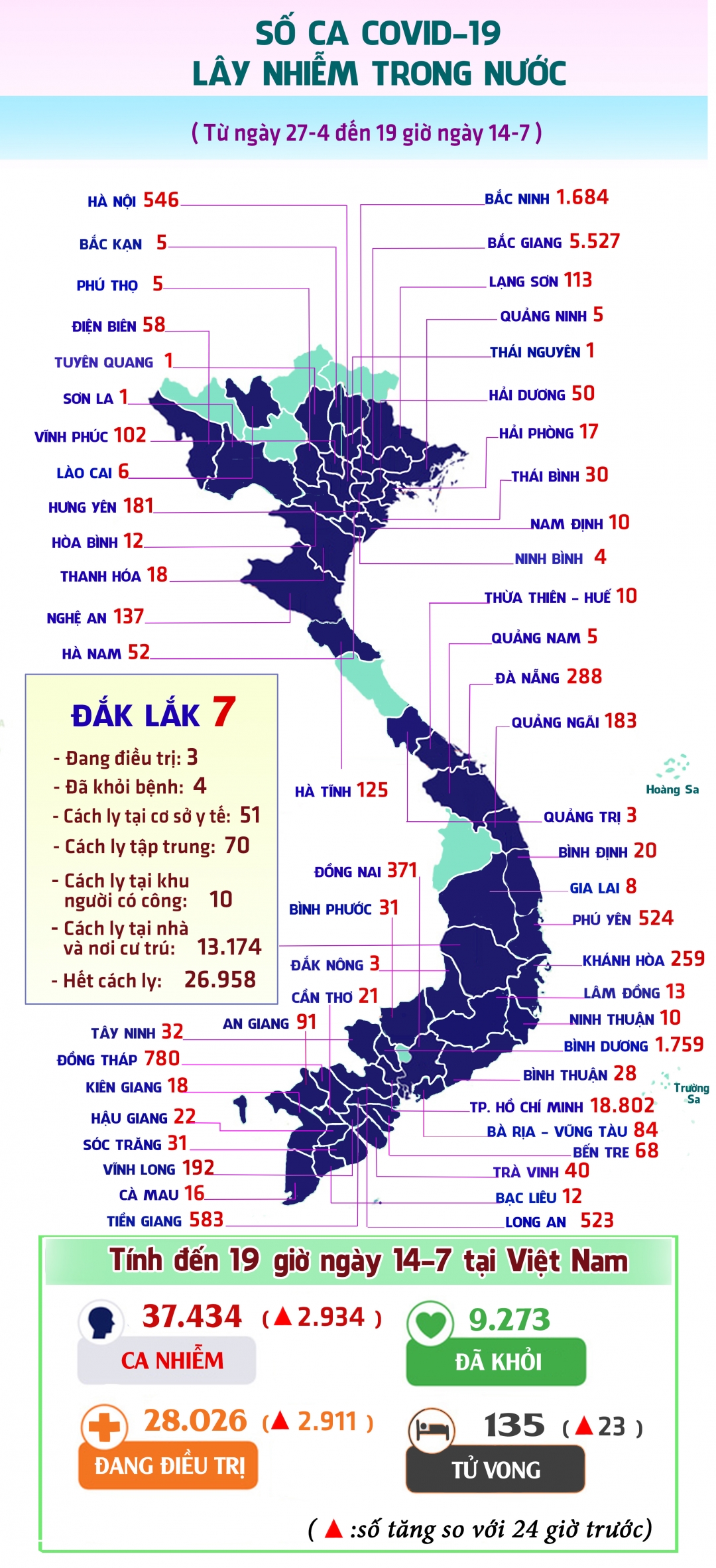 Cập nhật thông tin dịch COVID-19 tối 14-7-2021