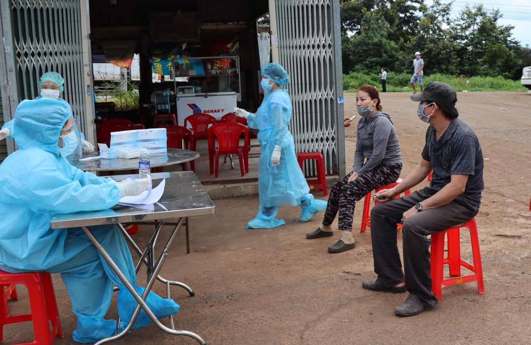 Còn tại chợ Ea Tam, tất cả các lối phụ vào chợ đã được phong tỏa tạm thời. Lối chính dẫn vào chợ, lực lượng kiểm soát tổ chức phân luồng, hướng dẫn người dân khai thông tin trên phiếu, thu thẻ vào chợ và đo thân nhiệt trước khi vào chợ.