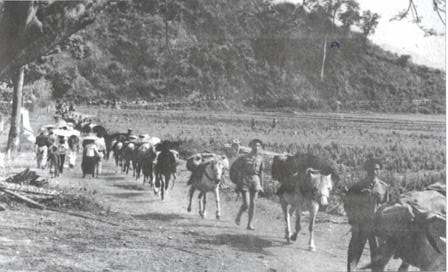 | Ngựa, xe trâu đều được huy động để vận chuyển vũ khí |