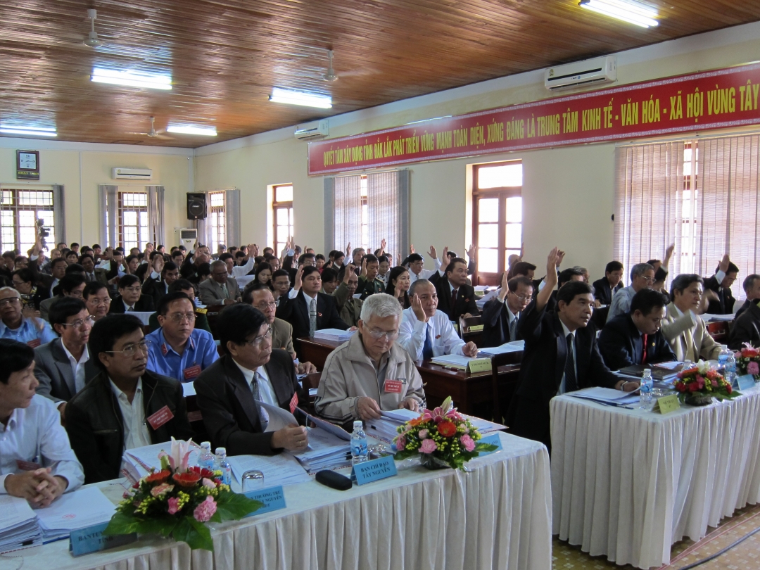 Thay mặt UBND tỉnh, đồng chí Lữ Ngọc Cư, Phó Bí thư Tỉnh ủy, Chủ tịch UBND tỉnh đã trình bày báo cáo tóm tắt tình hình thực hiện nhiệm vụ phát triển KT-XH, bảo đảm an ninh quốc phòng trên địa bàn tỉnh trong năm 2010 và phương hướng nhiệm vụ đặt ra trong năm 2011. Nhìn chung những kết quả đạt được trên các mặt KT-XH của tỉnh trong năm 2010 là rất khả quan. Nền kinh tế của tỉnh tiếp tục duy trì tăng trưởng ở mức cao, thu ngân sách vượt kế hoạch đề ra, đầu tư phát triển được đẩy mạnh. Giá trị tổng sản phẩm (giá so sánh năm 1994) ước đạt 12.813 tỷ đồng, tăng 12,2% so với năm 2009. Huy động vốn đầu tư toàn xã hội đạt 9.050 tỷ đồng, bằng 36% so với GDP. Các ngành dịch vụ tiếp tục phát triển khá, tổng mức bán lẻ hàng hóa, doanh thu dịch vụ tiêu dùng và du lịch đều tăng. Tổng mức lưu chuyển hàng hóa trên địa bàn là 26.400 tỷ đồng. Sản xuất nông nghiệp tuy bị ảnh hưởng của thiên tai, dịch bệnh nhưng vẫn đạt kế hoạch. Năm 2010 là năm đầu tiên Dak Lak tham gia vào Câu lạc bộ 1 triệu tấn lương thực. Tổng thu cân đối ngân sách Nhà nước trên địa bàn đạt trên 2.910 tỷ đồng, tăng 33% so với dự toán Trung ương giao và tăng 16,4% dự toán HĐND tỉnh giao. Chất lượng giáo dục, y tế được nâng lên; các hoạt động văn hóa, thể thao được tổ chức đa dạng, rộng khắp, đáp ứng được nhu cầu của nhân dân. Tỷ lệ trường đạt chuẩn Quốc gia đạt 16%; tỷ lệ xã, phường, thị trấn đạt chuẩn về phổ cập THCS đạt 98%. Đến nay đã có 90,2% số xã đạt chuẩn quốc gia về y tế. Các chính sách xã hội được thực hiện kịp thời, đầy đủ. Trong năm toàn tỉnh đã tạo việc làm mới cho 24.976 lao động, tỷ lệ lao động đã qua đào tạo đạt 37%. Tỷ lệ hộ nghèo trên địa bàn giảm xuống còn 10%... Công tác cải cách hành chính, hiệu lực, hiệu quả quản lý Nhà nước các cấp ngày càng được nâng cao; an ninh quốc phòng, trật tự an toàn xã hội được giữ vững...