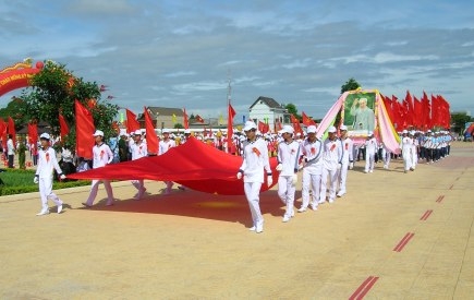 | Rước quốc kỳ và ảnh Bác tại Lễ kỷ niệm. |