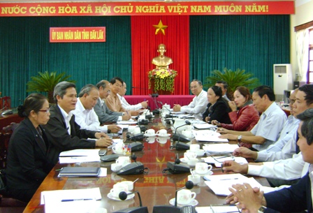 Chiều 29-12, UBND tỉnh đã tổ chức buổi gặp mặt đánh giá kết quả thực hiện Quy chế phối hợp giữa UBND tỉnh với UBMTTQVN tỉnh và các tổ chức đoàn thể (sau đây gọi tắt là các bên) trong năm 2011 dưới sự chủ trì của Chủ tịch UBND tỉnh Lữ Ngọc Cư. Tham dự buổi làm việc có các đồng chí Y Dhăm Ênuôl, Phó Chủ tịch Thường trực UBND tỉnh; Mai Hoan Niê Kđăm, Phó Chủ tịch UBND tỉnh.