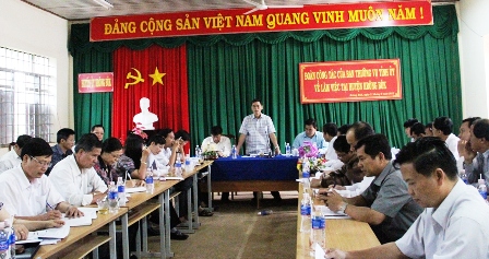 Ngày 21-6, Đoàn công tác của Thường trực Tỉnh ủy do Phó Bí thư Tỉnh ủy Cao Đức Khiêm làm trưởng đoàn đã có buổi làm việc với Huyện ủy Krông Buk về tình hình thực hiện nhiệm vụ 6 tháng đầu năm và triển khai nhiệm vụ, giải pháp 6 tháng cuối năm 2012.