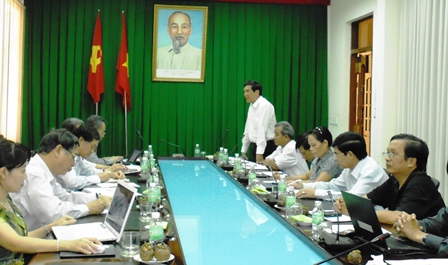 | Phó Bí thư Thường trực Tỉnh uỷ Hoàng Trọng Hải phát biểu tại buổi làm việc |