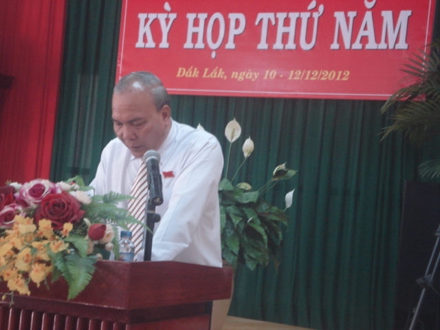 | Ông YDhăm Ênuôl, Phó Chủ tịch Thường trực UBND tỉnh báo cáo tình hình kinh tế - xã hội năm 2012, triển khai nhiệm vụ 2013 |