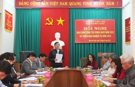 | Đại diện Ban Tuyên giáo Tỉnh ủy thông qua báo cáo công tác Khoa giáo năm 2013 |
