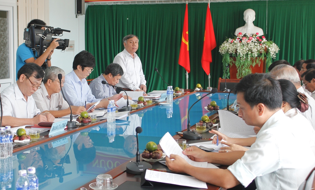 | Đồng chí Nguyễn Văn Sửu, Phó trưởng đoàn kiểm tra của Bộ Chính trị phát biểu tại buổi làm việc |