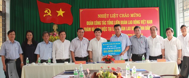Nhân dịp này, Tổng LĐLĐ Việt Nam đã hỗ trợ 50 triệu đồng cho công nhân lao động tỉnh gặp khó khăn do hạn hán.