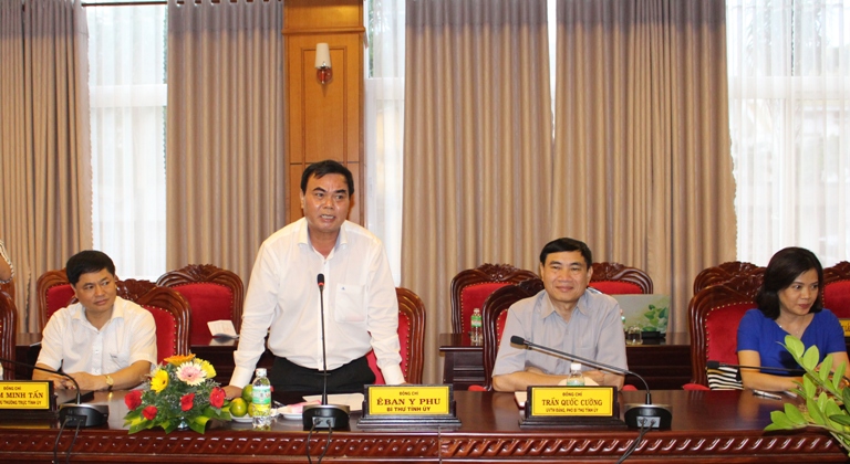 Tham dự hội nghị có các đồng chí: Êban Y Phu, Bí thư Tỉnh ủy; Phạm Minh Tấn, Phó Bí thư Thường trực Tỉnh ủy; Trần Quốc Cường, Ủy viên Trung ương Đảng, Phó Bí thư Tỉnh ủy; Y Biêr Niê, Phó Bí thư Tỉnh ủy, Chủ tịch HĐND tỉnh; các đồng chí nguyên là lãnh đạo của tỉnh.