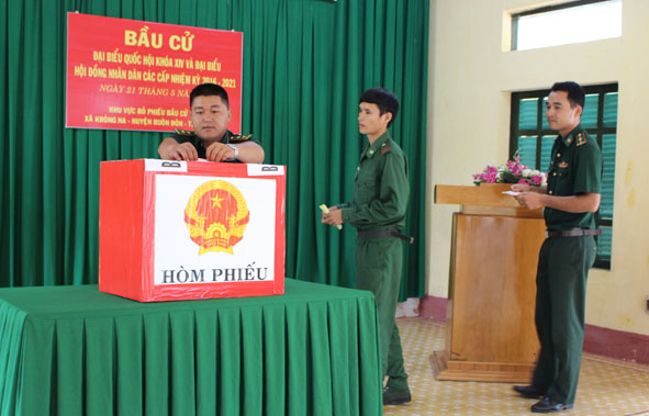 | Các cử tri Đồn Biên phòng Yok Đôn thực hiện bầu cử. Ảnh: Quỳnh Anh |