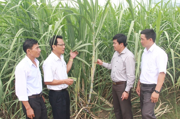 | Lãnh đạo huyện Krông Bông kiểm tra cánh đồng mía ở xã Hòa Sơn. Ảnh: Hoàng Gia |