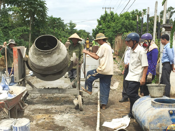 | Người dân thôn 6, xã Ea Ktur làm đường giao thông nông thôn. |