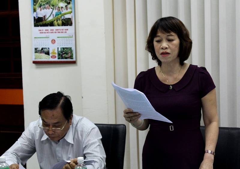 | Phó Trưởng Ban Dân vận Tỉnh ủy Mai Lan Anh trình bày báo cáo kết quả thực hiện Quy chế dân chủ 6 tháng đầu năm, triển khai nhiệm vụ 6 tháng cuối năm 2017. |