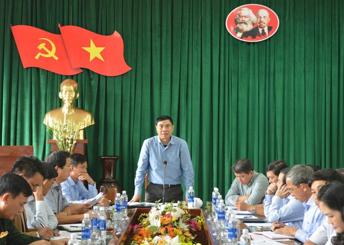 | Đồng chí Trần Quốc Cường, Ủy viên Trung ương Đảng, Phó Bí thư Tỉnh ủy phát biểu chỉ đạo tại buổi làm việc |