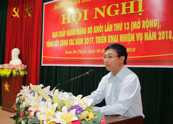 Phát huy những kết quả đạt được, năm 2018, Đảng bộ Khối Doanh nghiệp tỉnh phấn đấu có trên 85% số doanh nghiệp sản xuất, kinh doanh có lãi; trên 95% số đơn vị lãnh đạo thực hiện tốt nhiệm vụ quốc phòng, an ninh, trật tự an toàn xã hội; 99% đảng viên hoàn thành nhiệm vụ; kết nạp mới 160 đảng viên… Cùng với đó, các cấp ủy đảng cùng lãnh đạo doanh nghiệp sẽ quan tâm hơn nữa công tác chính trị, tư tưởng và rèn luyện phẩm chất đạo đức; duy trì, đổi mới và nâng cao chất lượng sinh hoạt Đảng; nâng cao hiệu quả công tác kiểm tra, giám sát, thi hành kỷ luật trong Đảng và phòng, chống tham nhũng, lãng phí; tích cực cùng địa phương thực hiện tốt công tác an sinh xã hội, đền ơn đáp nghĩa, kết nghĩa với buôn đồng bào dân tộc thiểu số…