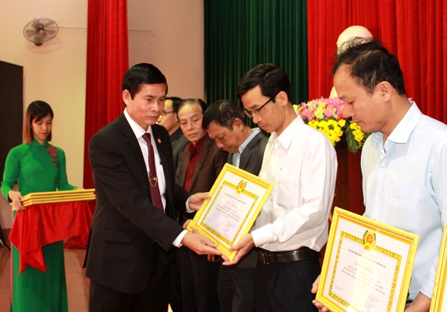 | Bí thư Đảng Đảng ủy Khối các cơ quan tỉnh Trần Đình Quế trao Giấy khen tặng các chi bộ đạt “Trong sạch vững mạnh” tiêu biểu 5 năm liên tục (2013-2017). |