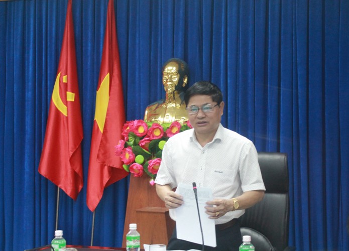| Phó Bí thư Thường trực Tỉnh uỷ Phạm Minh Tấn phát biểu chỉ đạo tại cuộc họp. |