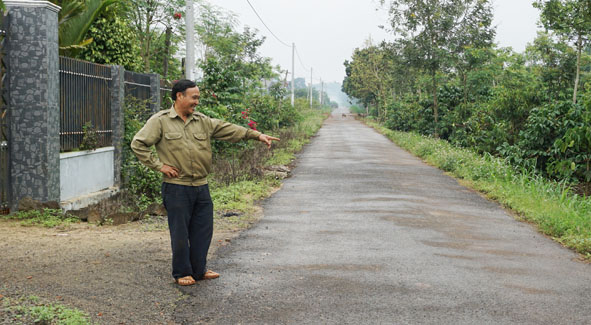| Con đường khang trang vào buôn Ea Na do Nhà nước và nhân dân cùng làm. |