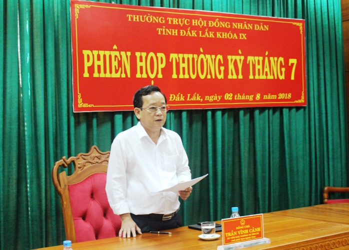 Phát biểu tại phiên họp, Phó Chủ tịch HĐND tỉnh Trần Vĩnh Cảnh nhấn mạnh những nhiệm vụ trọng tâm trong tháng 8-2018 cần chú trọng là đôn đốc, giám sát việc triển khai thực hiện Nghị quyết HĐND tỉnh, thực hiện chính sách pháp luật trên địa bàn, nhất là việc triển khai thực hiện các Nghị quyết tại Kỳ họp thứ Sáu; triển khai kế hoạch giám sát về tình hình đầu tư công trên địa bàn, quản lý sản xuất, kinh doanh giống và vật tư nông nghiệp; tổ chức phiên giải trình của Thường trực HĐND tỉnh về quản lý tài sản công và thu hút đầu tư trên địa bàn tỉnh…