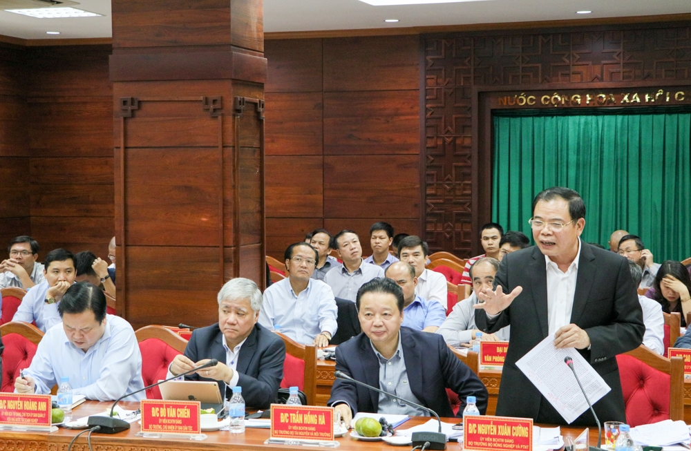 | Bộ trưởng Bộ Nông nghiệp và Phát triển nông thôn Nguyễn Xuân Cường phát biểu tại buổi làm việc. Ảnh: H. Gia |