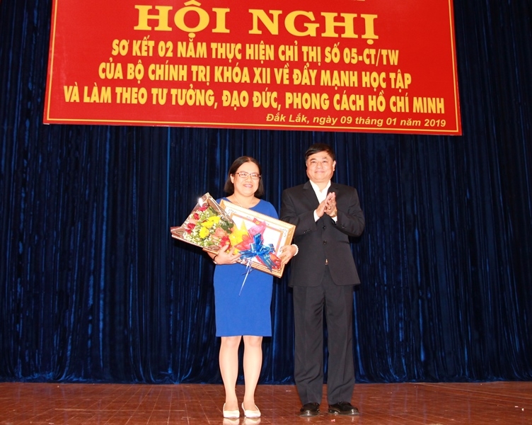 Nhân dịp này, Ban Thường vụ Tỉnh ủy đã tặng Bằng khen 20 tập thể và 21 cá nhân có thành tích tiêu biểu trong học tập và làm theo tư tưởng, đạo đức, phong cách Hồ Chí Minh giai đoạn 2016 - 2018; trao giải Khuyến khích của Ban Chỉ đạo Giải thưởng sáng tác, quảng bá tác phẩm văn học, nghệ thuật, báo chí về chủ đề học tập và làm theo tư tưởng, đạo đức, phong cách Hồ Chí Minh cho tác phẩm “Mang tinh hoa về quê hương” của tác giả Hải Hà (phóng viên Báo Đắk Lắk). Đây là tác phẩm duy nhất của tỉnh Đắk Lắk được trao giải.