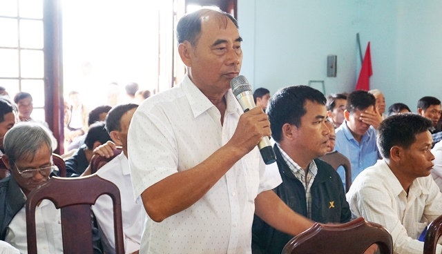 | Cử tri xã Hòa Phong phát biểu tại buổi tiếp xúc. |