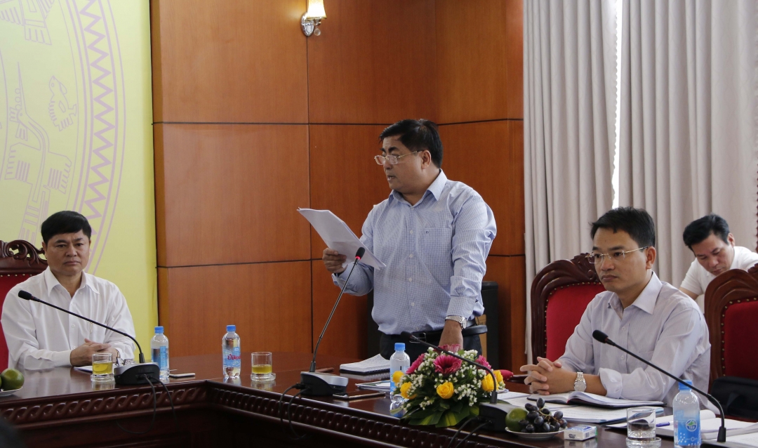 | Phó Bí thư Thường trực Tỉnh ủy Phạm Minh Tấn phát biểu tại buổi làm việc |