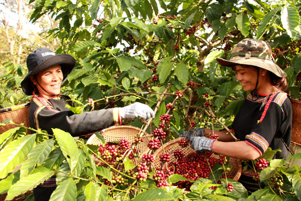 | Người dân buôn Ko Tam (xã Ea Tu) chú trọng áp dụng khoa học kỹ thuật trong chăm sóc, thu hái cà phê bảo đảm chất lượng, hiệu quả. |