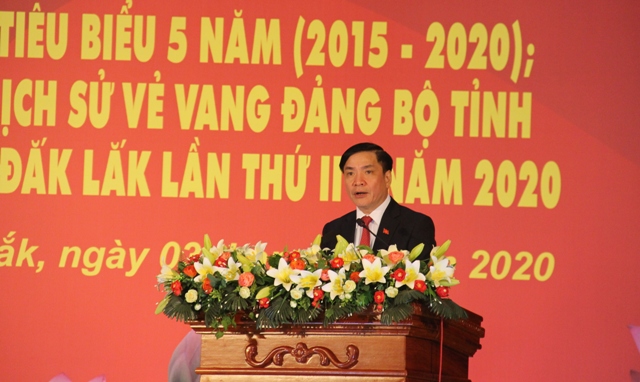 Kỷ niệm 90 năm Ngày thành lập Đảng Công sản Việt Nam, hôm nay Tỉnh ủy biểu dương 18 tổ chức đảng và 34 đảng viên tiêu biểu. Đây thực sự là những bông hoa tươi thắm trong vườn hoa người tốt việc tốt của toàn Đảng bộ. Tôi mong muốn và tin tưởng rằng các tập thể, cá nhân được tuyên dương hôm nay tiếp tục tỏa sáng, lan tỏa để có nhiều hơn nữa những tổ chức cơ sở đảng, những đảng viên tiêu biểu, ưu tú, làm nòng cốt, hạt nhân lãnh đạo để xây dựng Đắk Lắk ngày càng giàu đẹp, Đảng bộ tỉnh ngày càng trong sạch, vững mạnh. Thay mặt mặt Ban Chấp hành Đảng bộ tỉnh, tôi ghi nhận, biểu dương và đánh giá cao thành tích mà các đồng chí đã đạt được. Đề nghị chúng ta nhiệt liệt chúc mừng.